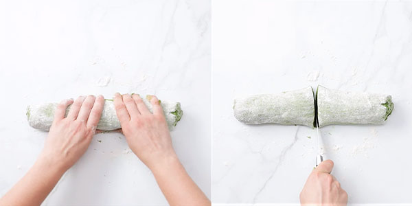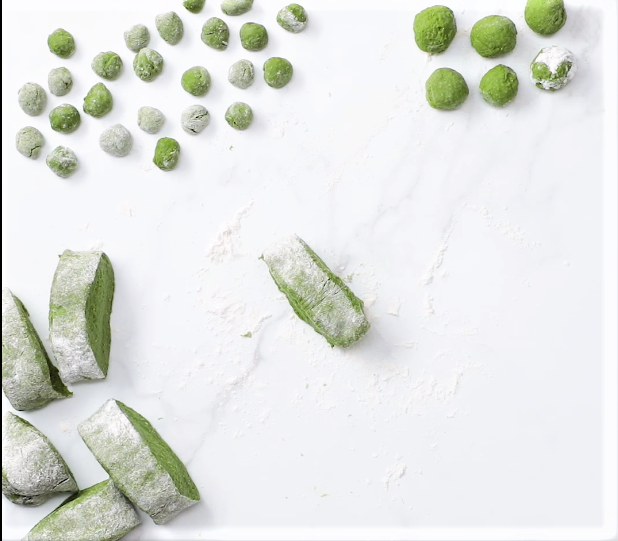 - Bước 3: Sau khi bột đã nở, lăn bột với bột áo rồi chia thành 8 miếng có kích thước bằng nhau. Lấy 6 miếng để làm thân rùa, 3 miếng còn lại cắt nhỏ ra để làm đầu rùa và chân rùa.