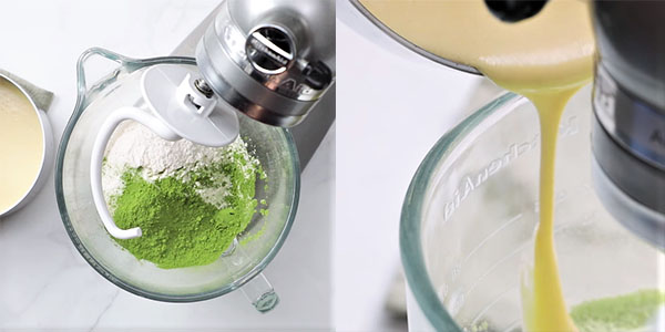- Bước 1: Cho tất cả các nguyên liệu của phần bột vào máy trộn bột, bật máy trộn trong 10 phút, vừa trộn vừa đổ phần sốt vào. Sau 10 phút sẽ thấy bột có độ đàn hồi và hơi dính.