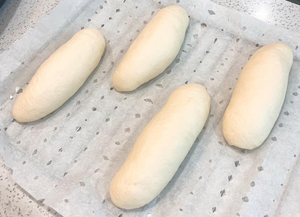 - Đặt bột lên khay nướng, tiếp tục để nghỉ khoảng 10-20 phút để khô mặt và bột nở hơn.