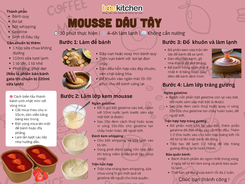 Tự tay làm bánh Mousse Dâu tây với set nguyên liệu DIY made by Bee