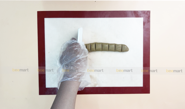 - Chia vỏ bánh thành 12 phần bằng nhau (khoảng 10g/ bánh)