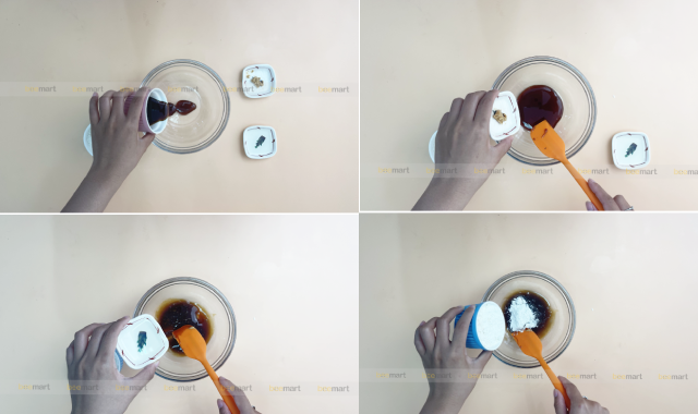 - Đầu tiên, trộn đều 45g nước đường bánh nướng, 9g dầu ăn và 1g bơ đậu phộng