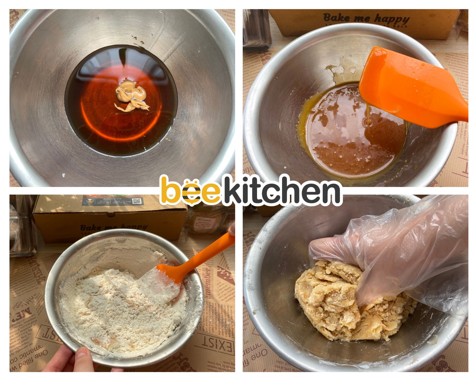 - Trộn đều bột mì, nước đường, dầu ăn để tạo thành bột vỏ bánh. Để bột nghỉ khoảng 30 phút.