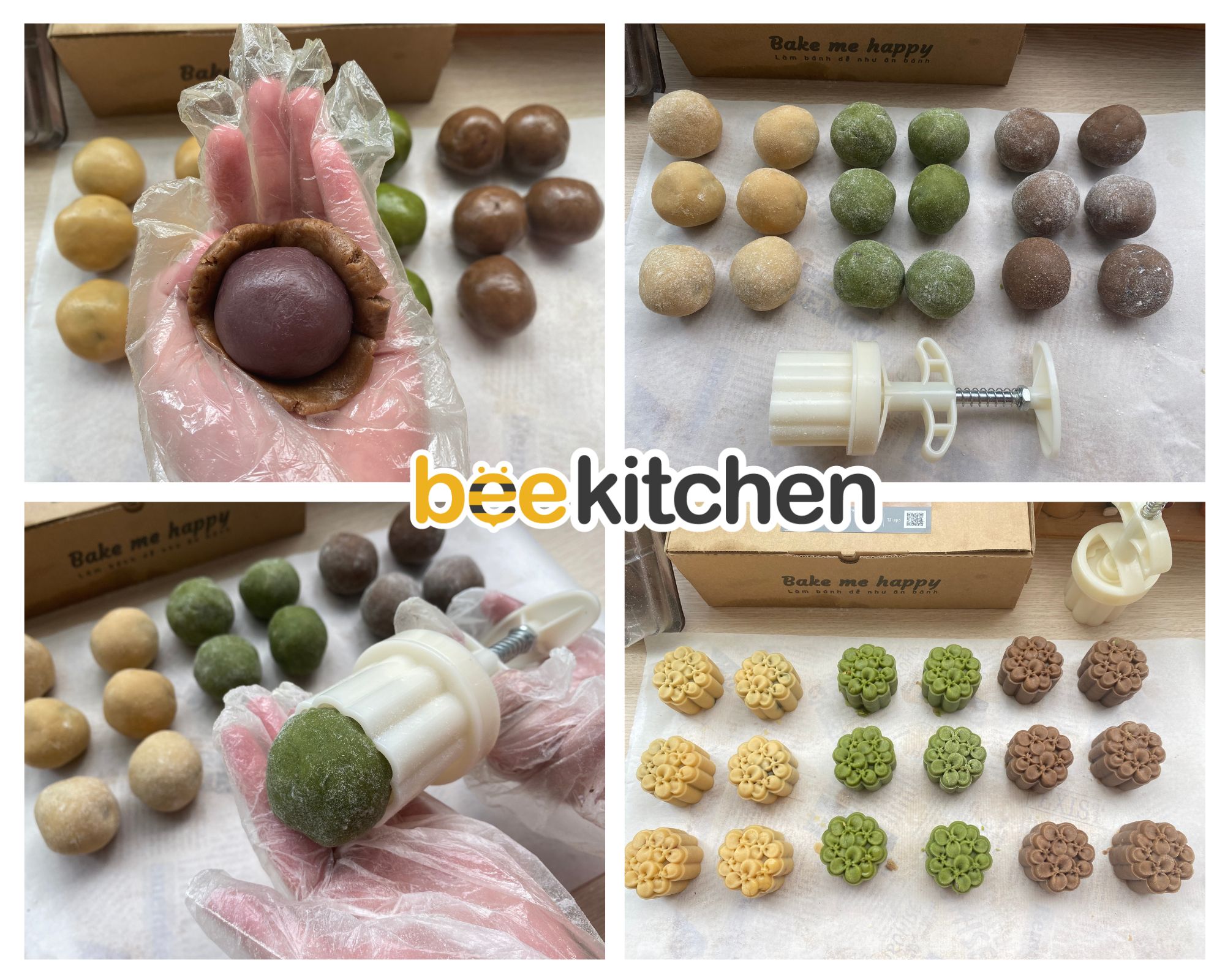 - Bọc nhân bánh bên trong vỏ bánh, sau đó sử dụng khuôn bánh để tạo hình.