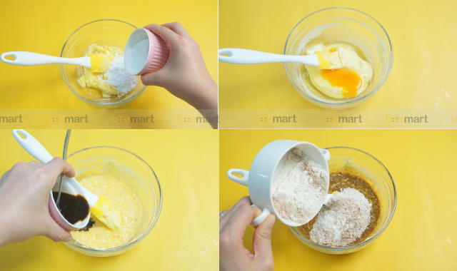 Lưu ý: Nếu thời tiết chỗ bạn hơi nóng ẩm có thể để phần bột cà phê này trong ngăn mát tủ lạnh, khi nào dùng thì lấy ra, như vậy khi nướng sẽ không bị chảy bơ và bánh cũng đẹp hơn