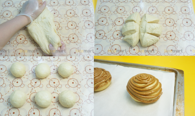 - Bột sau khi đã ủ đạt, nhào qua để bột bớt các bọt khí