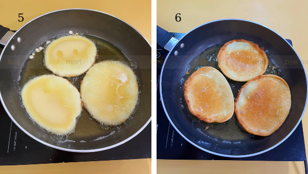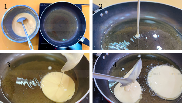 Đối với bước rán bánh bạn cần chuẩn bị một chiếc chảo chống dính dể bánh không bị bết dính vào chảo khi rán. Đặc biệt trong quá trình rán bánh bạn nên để lửa nhỏ để bánh không bị cháy khét.