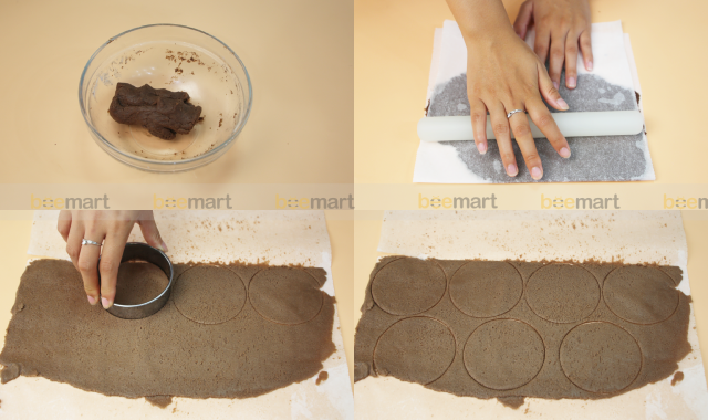 - Dùng 1 cái khuôn hình tròn để cắt đế bánh, sau đó cho bột vào tủ đông