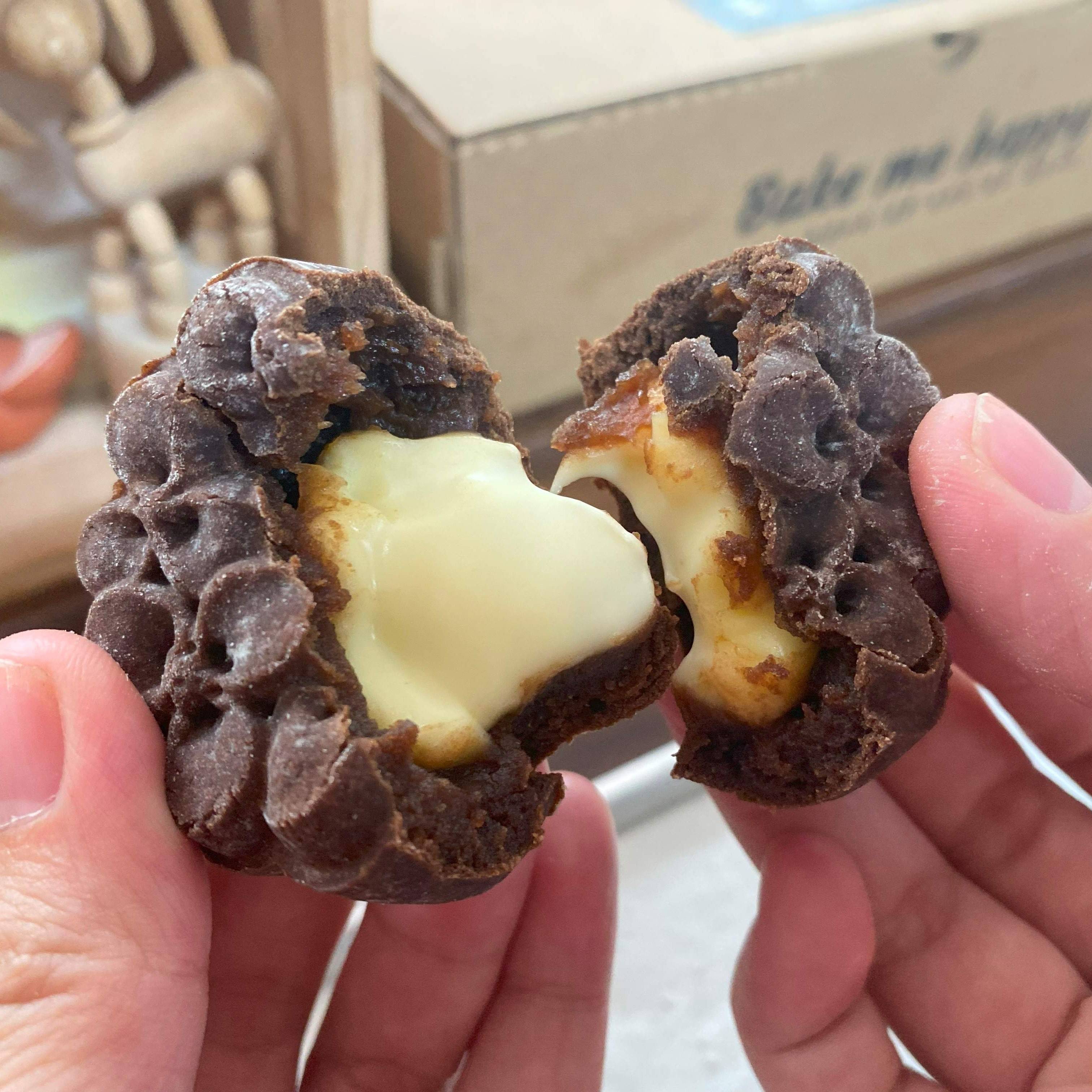 Bánh sau khi nướng 2 lần sẽ có lớp vỏ hơi cứng, tuy nhiên chỉ cần để khoảng nửa ngày bánh sẽ mềm ra. Bánh ăn ngay sẽ có phần sốt phomai bên trong hơi chảy.