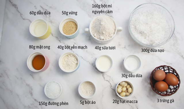 Nguyên liệu làm bánh trung thu nguyên cám nhân sữa dừa macca