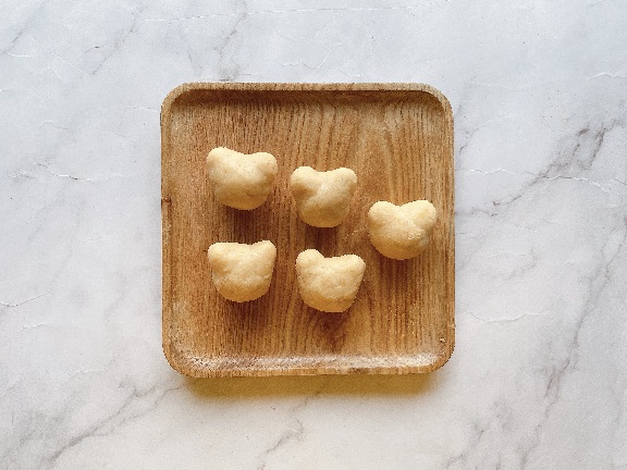 - Bánh vo tròn dùng tay đẩy nhô 2 hình tam giác lên, sao cho cân đối 2 bên.