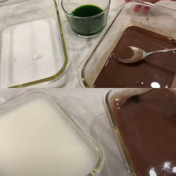 - Khuôn 1: Hòa tan 40g sữa nóng với 5g bột cacao, khuấy đều rồi thêm 30g sữa đặc.
