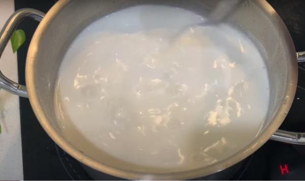 - Nước cốt này bạn để nguội rồi để trong tủ lạnh tối thiểu 6 tiếng thì nước cốt sẽ sánh đặc và béo ngậy hơn, có thể để qua đêm.