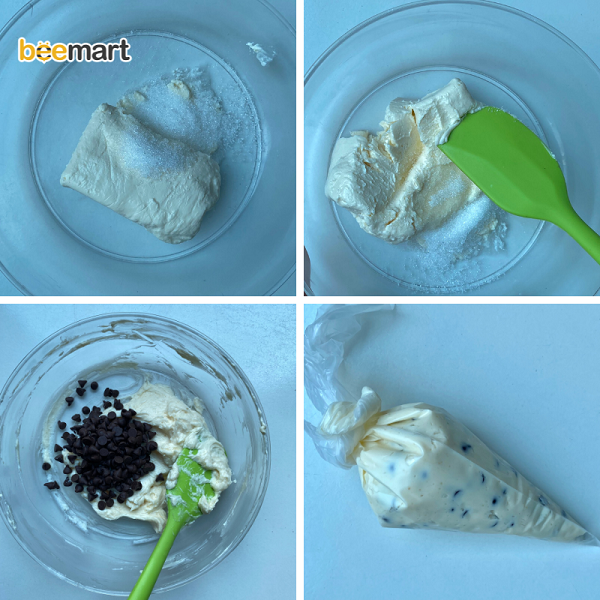 - Trộn phần cream cheese đã đánh với chocochips cho hòa quyện