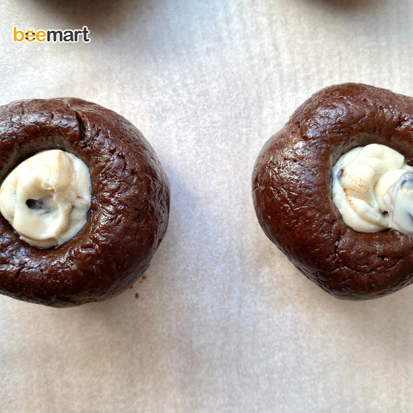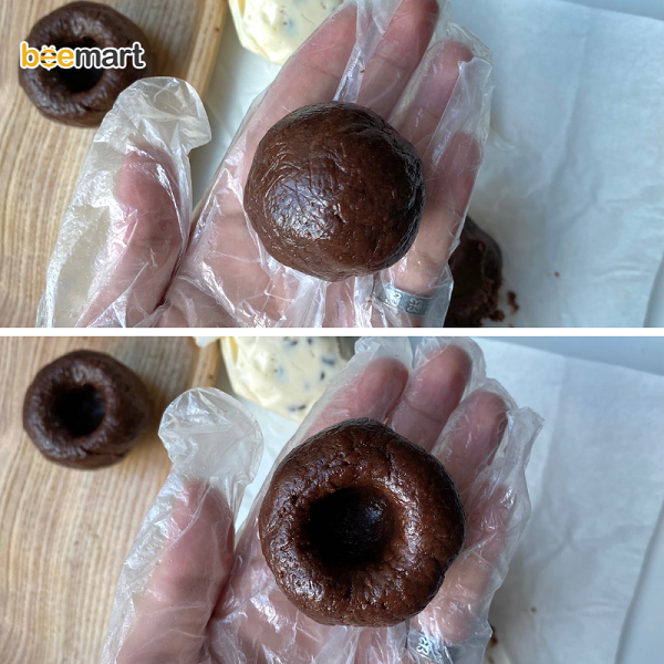 - Bóp phần nhân kem đã chuẩn bị vào giữa