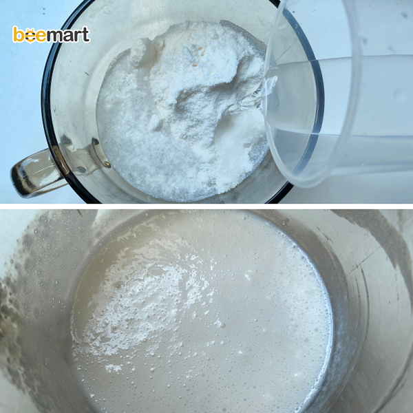 - Dùng phới lồng trộn đều hỗn hợp bột cho hòa quyện