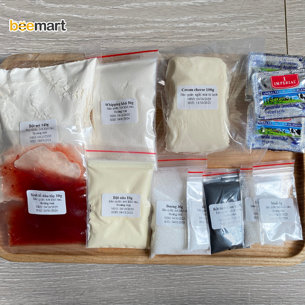 Để quá trình làm bánh cookies đơn giản và dễ dàng hơn cho bạn, nhà Bee chúng tớ đã chuẩn bị SNL Cookies phô mai tinh than tre dâu tây với đầy đủ nguyên liệu và dụng cụ cần thiết.