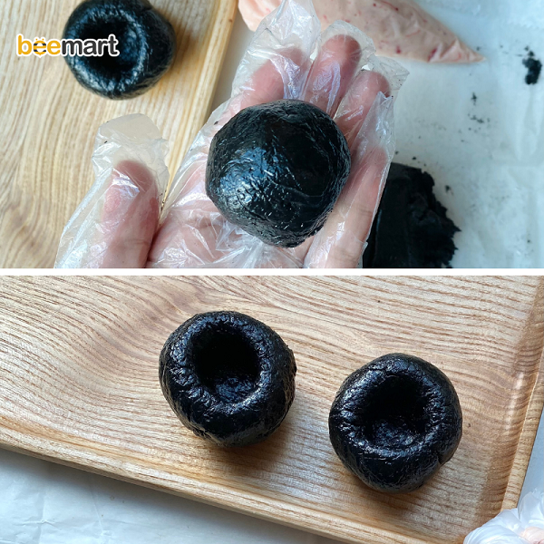 - Chia hỗn hợp bột ở bước 1 thành 6-8 miếng
