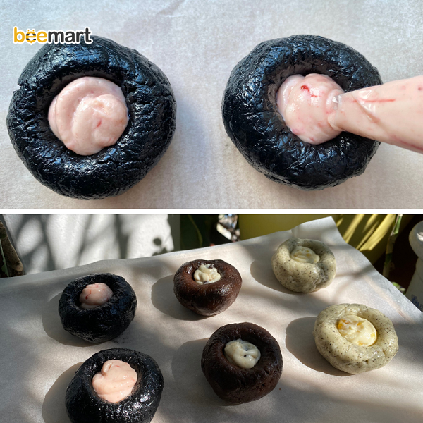 - Bóp phần nhân kem đã chuẩn bị vào giữa