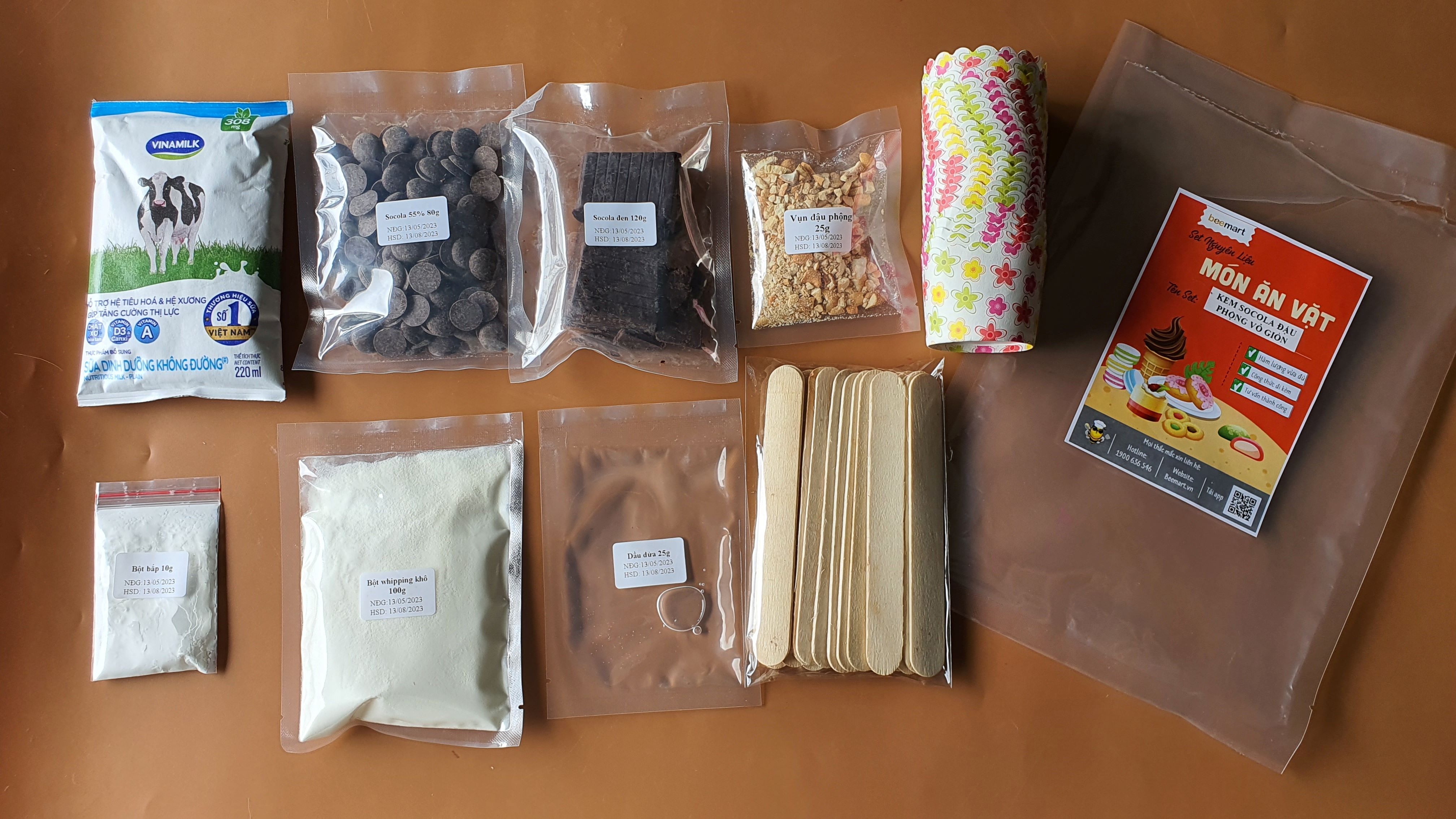 Set nguyên liệu làm kem nhà Bee bao gồm: