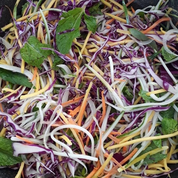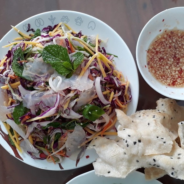 + Khi thưởng thức, bạn chắc chắn sẽ ấn tượng với hương vị ngọt thanh của sứa, giòn tan vô cùng lạ miệng hòa quyện cùng vị chua của xoài xanh cùng bắp cải và hành tây vô cùng hài hòa.