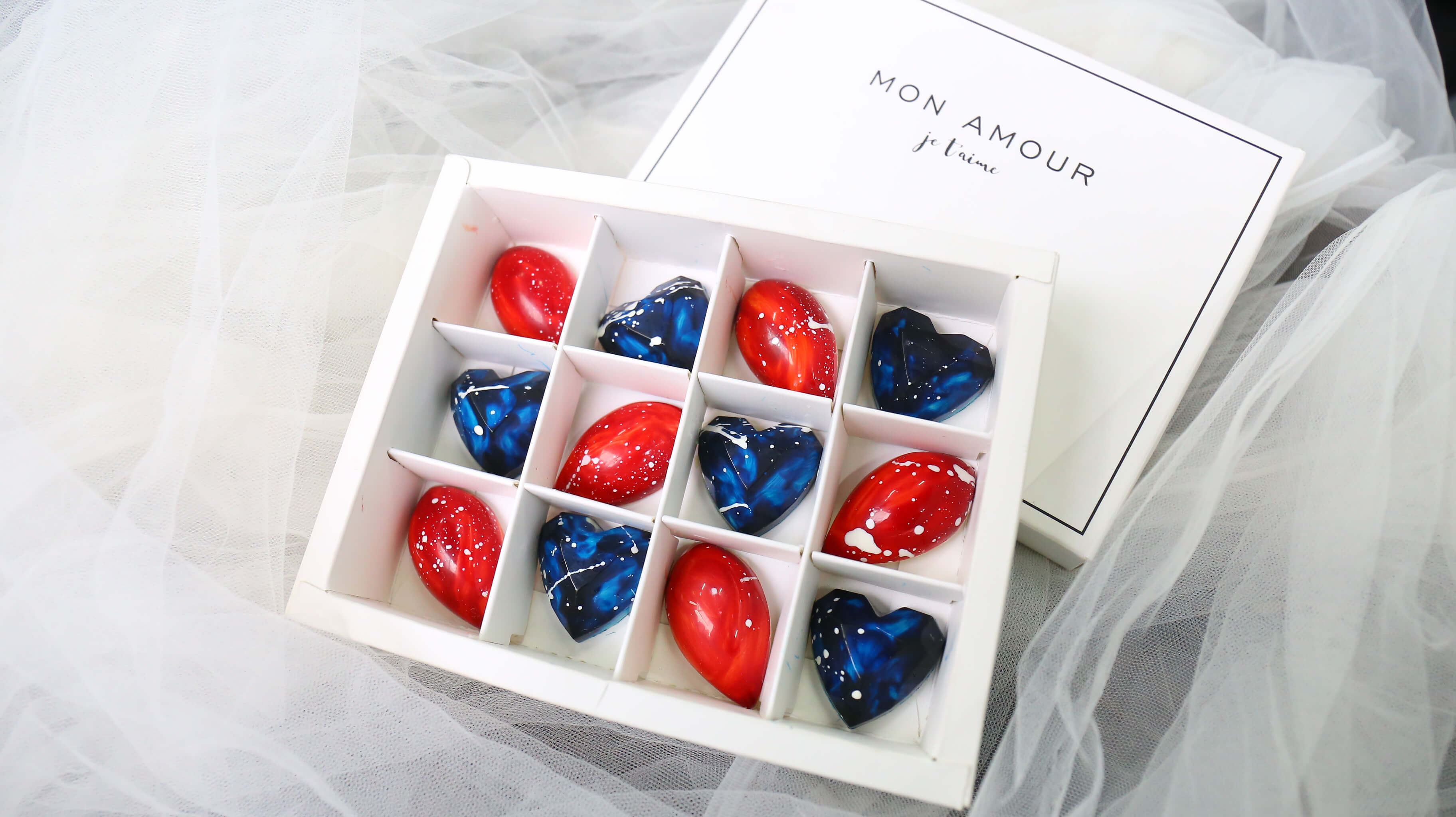 Socola bon bon là sự kết hợp tuyệt vời giữa các màu sắc, những màu vẽ trên sô cô la là sự sáng tạo tài hoa của người làm ra nó. Có thể bạn sẽ không nỡ ăn mà cứ muốn ngắm nhìn mãi những viên socola bon bon, nó như những tác phẩm nghệ thuật thu nhỏ.