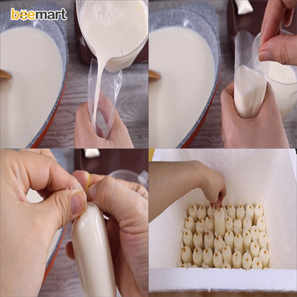 Sau khi ủ xong, lấy từng túi sữa chua ra, cất vào ngăn mát tủ lạnh để dùng dần. Nếu chưa tự tin về cách ủ sữa chua của mình thì có thể xem chi tiết hướng dẫn cách ủ sữa chua của Beemart nhé!!!