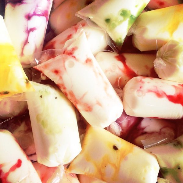 Để sữa chua có màu sắc đẹp, rực rỡ bạn có thể đổ một lớp siro, sinh tố hoa quả mỏng vào túi trước khi đổ sữa chua vào ủ. Thành phẩm thu được sẽ là những túi sữa chua vị hoa quả hết sức bắt mắt đấy nhé.