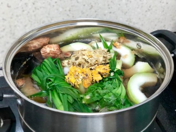 Bước 2: Nấu nước với mía, la hán quả, thục địa rồi cho bí đao vào hầm 20 phút