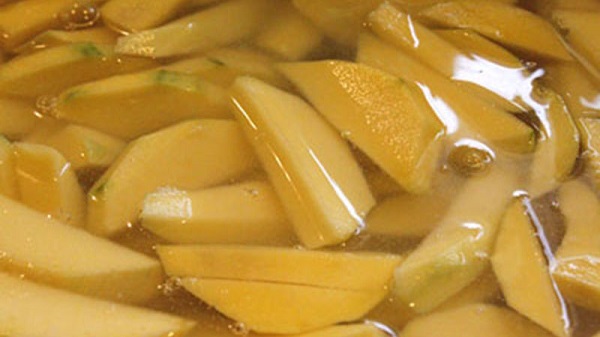 + Ngâm xoài vào nước đá lạnh khoảng 30 phút, vớt ra để ráo.
