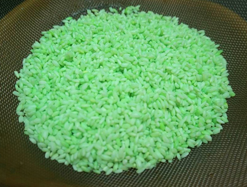 - Bước 3: Đổ gạo ra rổ, xóc cho ráo nước rồi ngâm với nước cốt lá dứa qua đêm để lấy màu xanh lá, mực nước so với gạo khoảng hơn 1cm để phòng gạo nở.