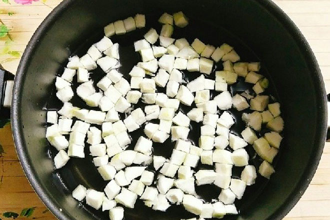 - Sau khi ngâm cùi nở hết cỡ, bạn đem rửa lại với nước sạch 1 lần rồi vớt lấy cùi ra bát riêng.