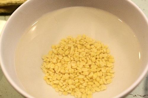 - Đậu xanh khô ngâm trong nước ấm trong vòng 1 tiếng cho đậu xanh mềm và nở.