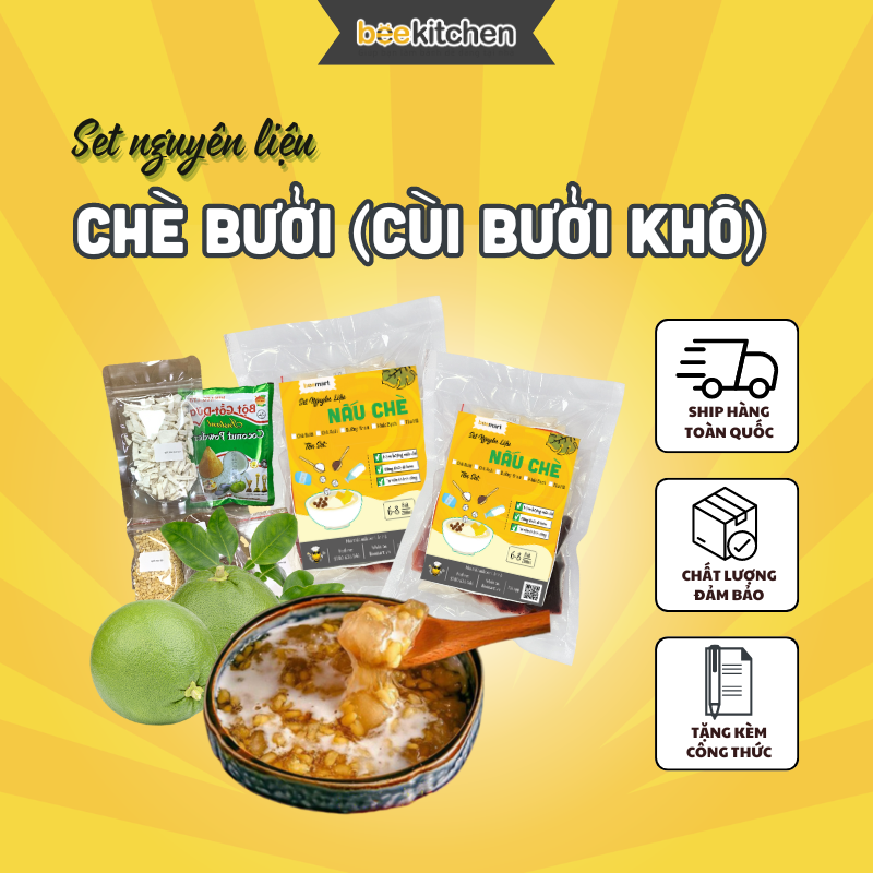 Nếu trước đây các bà các mẹ phải kì công chuẩn bị nguyên liệu, sơ chế quả bưởi tươi từ 2,3 ngày trước khi nấu chè thì ngày nay mọi thứ đều được gói gọn trong 1 set nguyên liệu nhà Bee ![]()