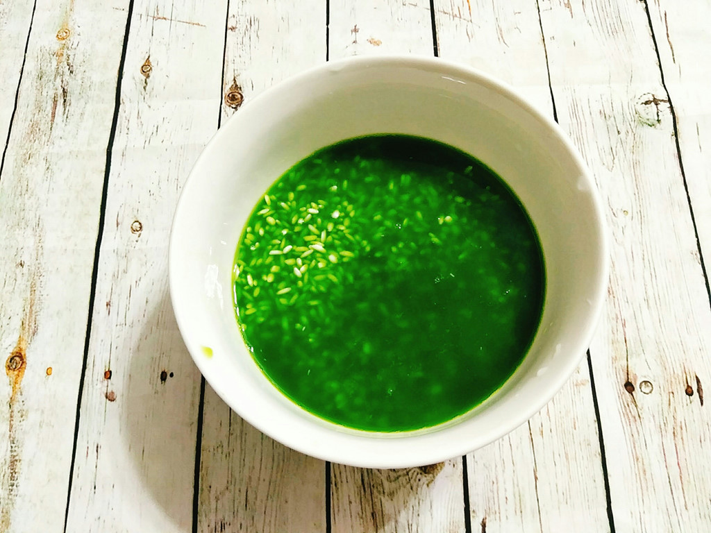 - Bước 2: Gạo nếp vo sạch xả nước lạnh, sau đó ngâm với nước lá dứa, tinh dầu lá dứa qua đêm (ngâm 8 tiếng) rồi xả qua nước lạnh 1 lần nữa để tạo màu xanh lá hấp dẫn.