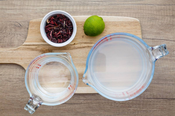 Bước 1: Cho nước và hoa atiso đỏ khô vào một tô lớn. Khuấy đều và để hỗn hợp trong tủ lạnh qua đêm.