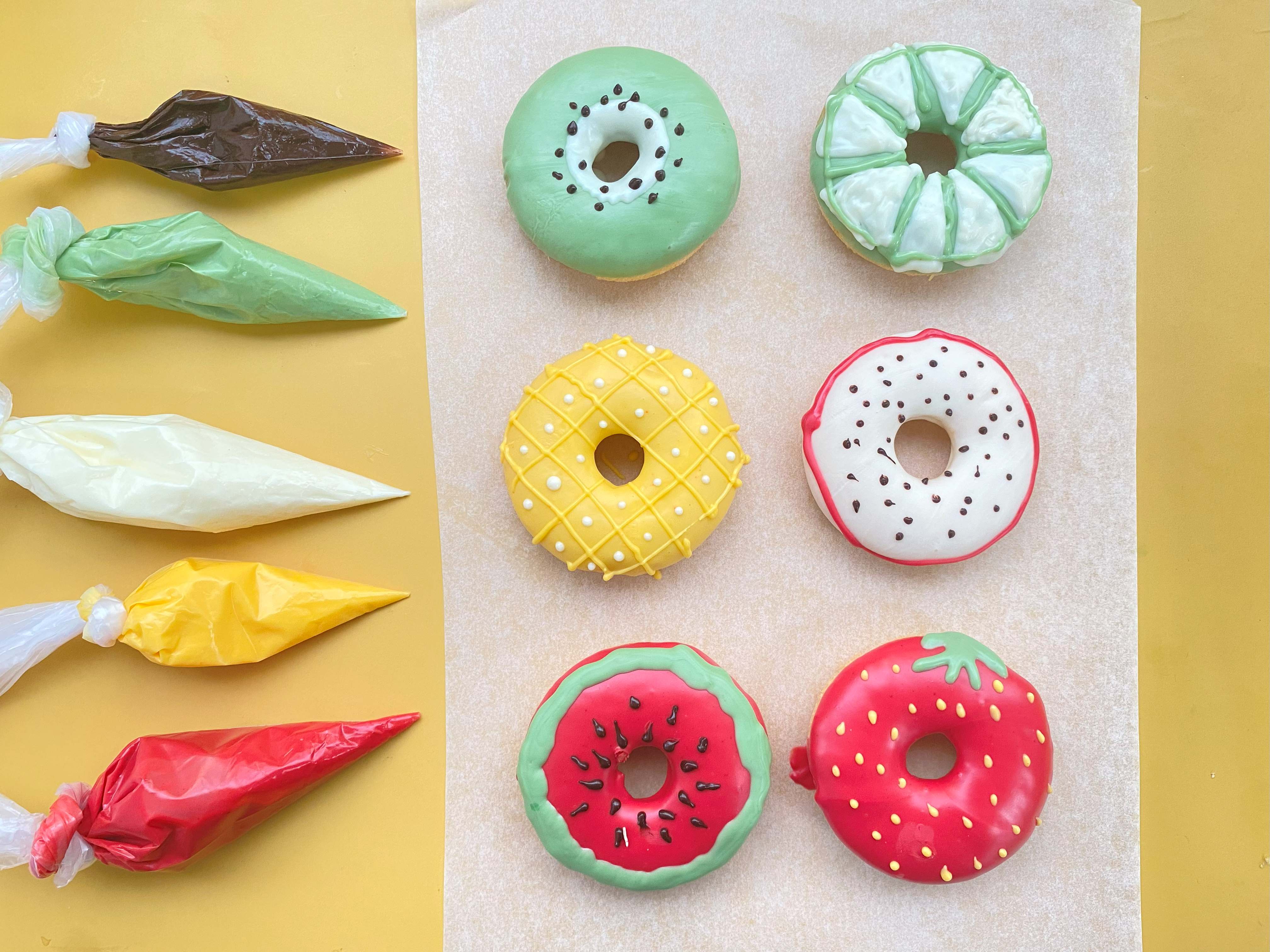 Hướng dẫn Trang trí bánh Donut với hình ảnh hoa quả vô cùng sinh động cho các bé