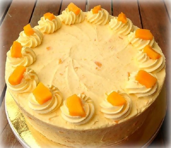 Phủ kín kem đã đánh bông lên bánh. Chú ý nên phủ lớp dày dày để chà láng không lộ phần bánh bên trong nha!