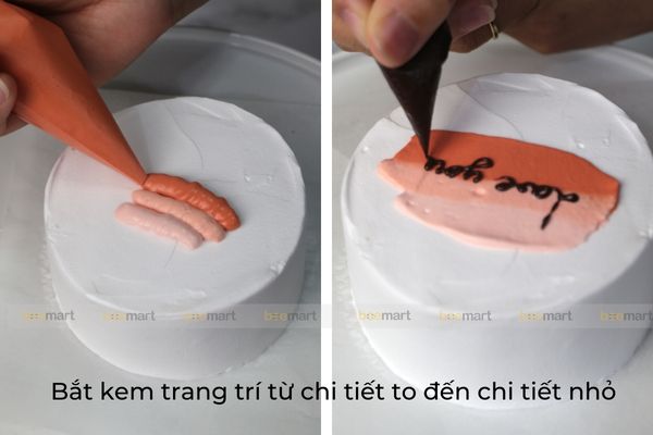 - Khi bắt kem tạo hình những chi tiết nhỏ bạn nên cắt túi bắt kem nhỏ để khi bơm lớp kem sẽ dễ dàng điều chỉnh.