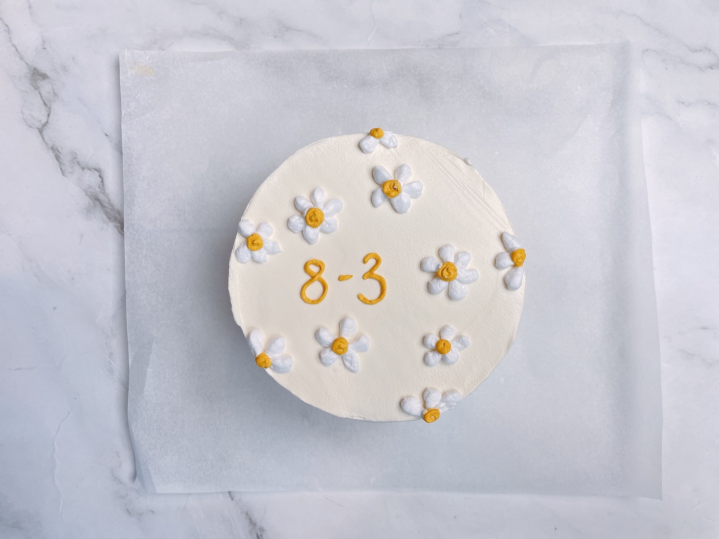 ** Vẽ hoa cúc daisy lên mặt bánh: