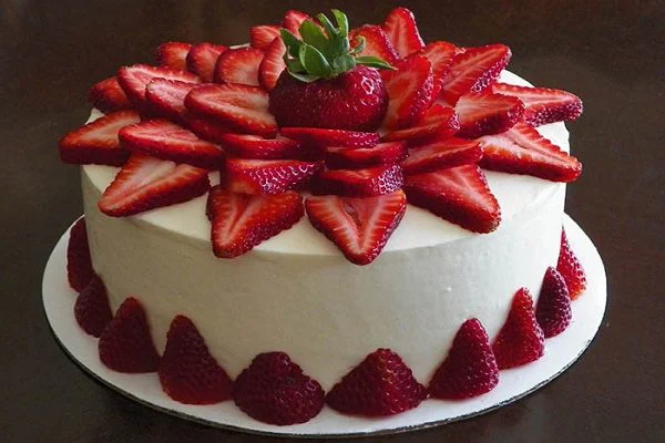 Bạn có thể trang trí bánh sinh nhật với trái dâu tây nguyên vẹn, chỉ cần cắt bỏ phần cuống lá, sắp xếp thứ tự trái dâu tây lên bề mặt bánh đã phết kem. Vậy là bạn đã có ngay thành phẩm tuyệt đẹp. Thật đơn giản phải không nào!
