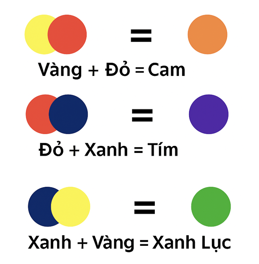 💡 Mẹo nhỏ: Bạn có thể phối màu như pha sơn – ví dụ trộn đỏ và vàng ra cam, xanh dương và đỏ ra tím.