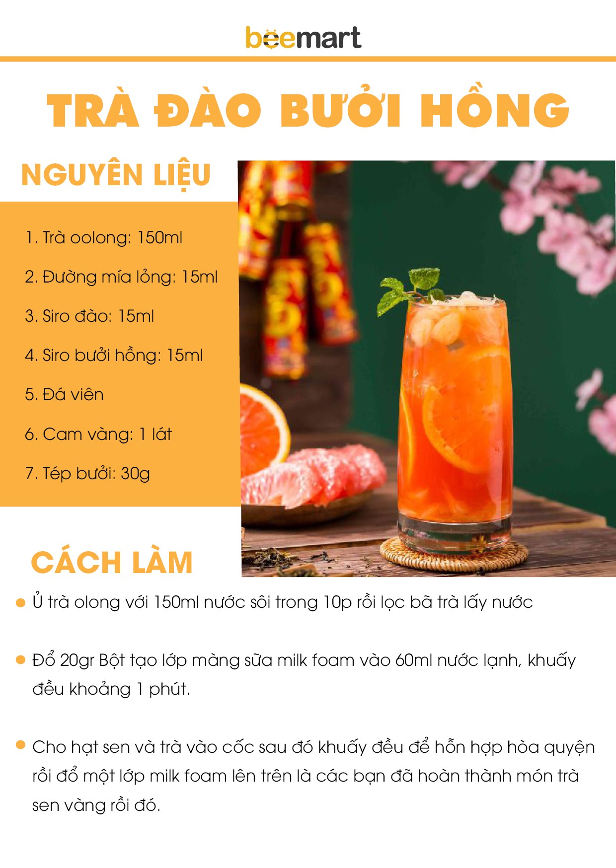 Nếu không có thời gian ngâm và chờ đợi, đừng quên trợ thủ đắc lực và muôn vàn vị siro - sinh tố nhà Bee nha. Mách bạn công thức làm Trà đào bưởi hồng - "đặc sản" của ngày hè nhé!!