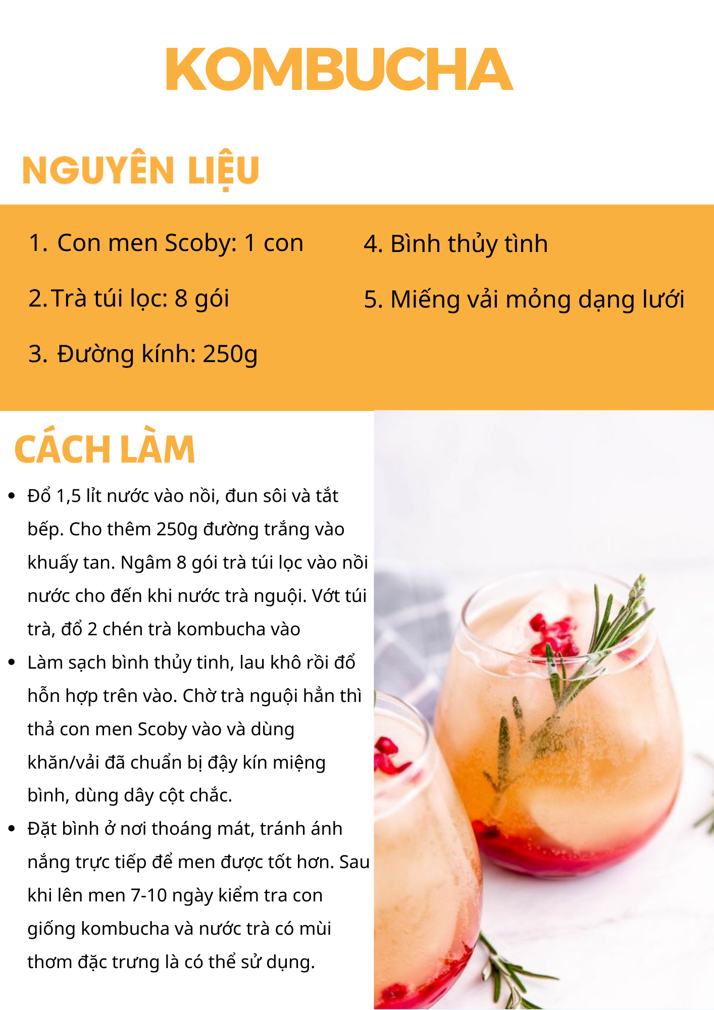 Trà kombucha là một loại trà rất ít đường và calo, chứa nhiều khoáng chất và vitamin tốt cho sức khỏe, có gas nhẹ. Bạn hãy ngâm một bình kombucha nhỏ cho hè này, vừa giải khát lại vô cùng tốt cho sức khỏe.