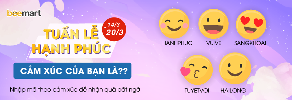 Chỉ cần mua hàng tại Beemart trong tuần lễ hạnh phúc từ ngày 14/3 - 20/3 (cả online và offline), các bạn sẽ được bốc thăm BIỂU TƯỢNG CẢM XÚC mang đến nhiều quà tặng bất ngờ từ Beemart.
