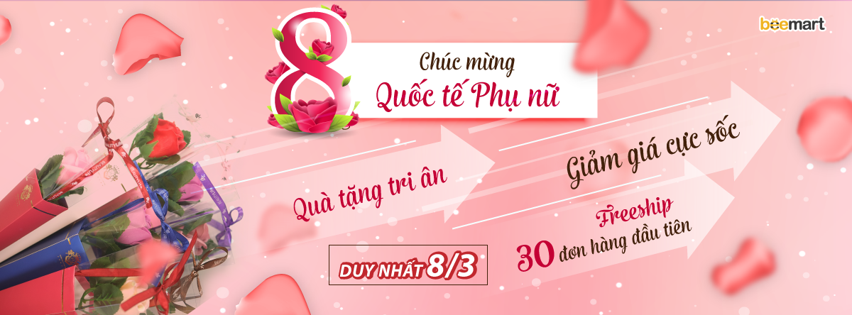 Thay cho lời tri ân gửi đến một nửa thế giới trong ngày Quốc tế Phụ nữ 8/3, Beemart dành tặng những món quà đặc biệt nhất cùng nhiều chương trình giảm giá, freeship cho tất cả khách hàng nữ.