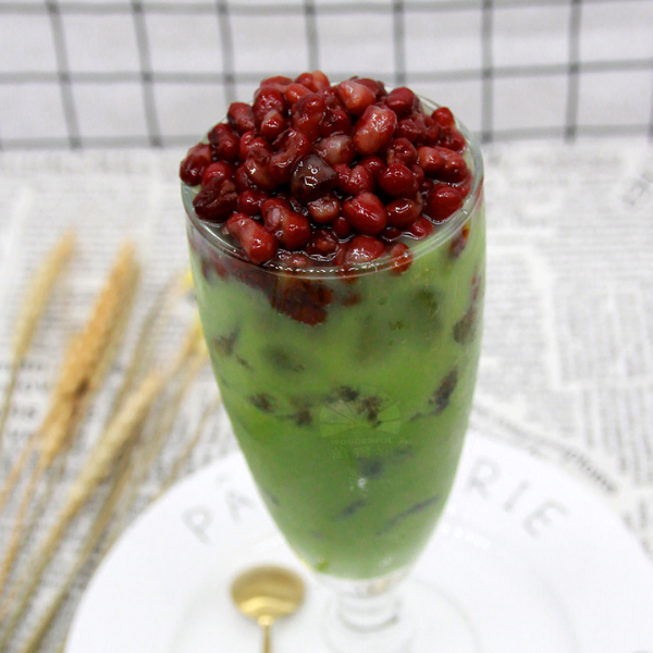 - Cho chè đậu đỏ vào cốc và đổ trà sữa ra và thưởng thức