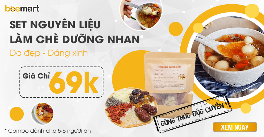 Xem ngay COMBO NGUYÊN LIỆU CHÈ DƯỠNG NHAN với đầy đủ nguyên liệu cùng hướng dẫn cách làm chi tiết TẠI ĐÂY