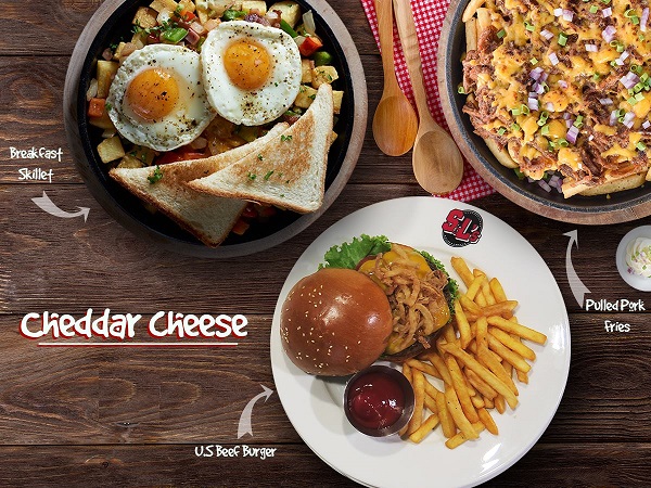 Phô mai Cheddar có vị đậm đà, mùi vị không quá gắt, có thể được kết hợp trong nhiều món ăn như mì ống, burger, và đặc biệt hoàn hảo trong món toast (bánh mì kẹp phô mai nướng). Lát phô mai cheddar màu vàng cam đẹp, khiến món ăn trở nên hấp dẫn và bắt mắt .