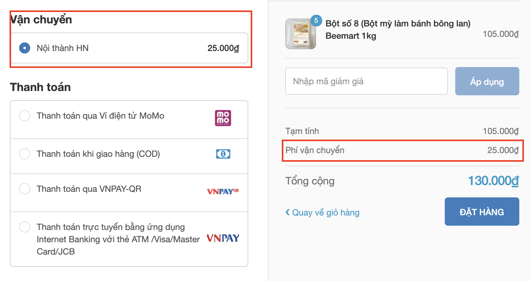 1. Chính sách giao hàng khi đặt qua ứng dụng App Beemart, Website